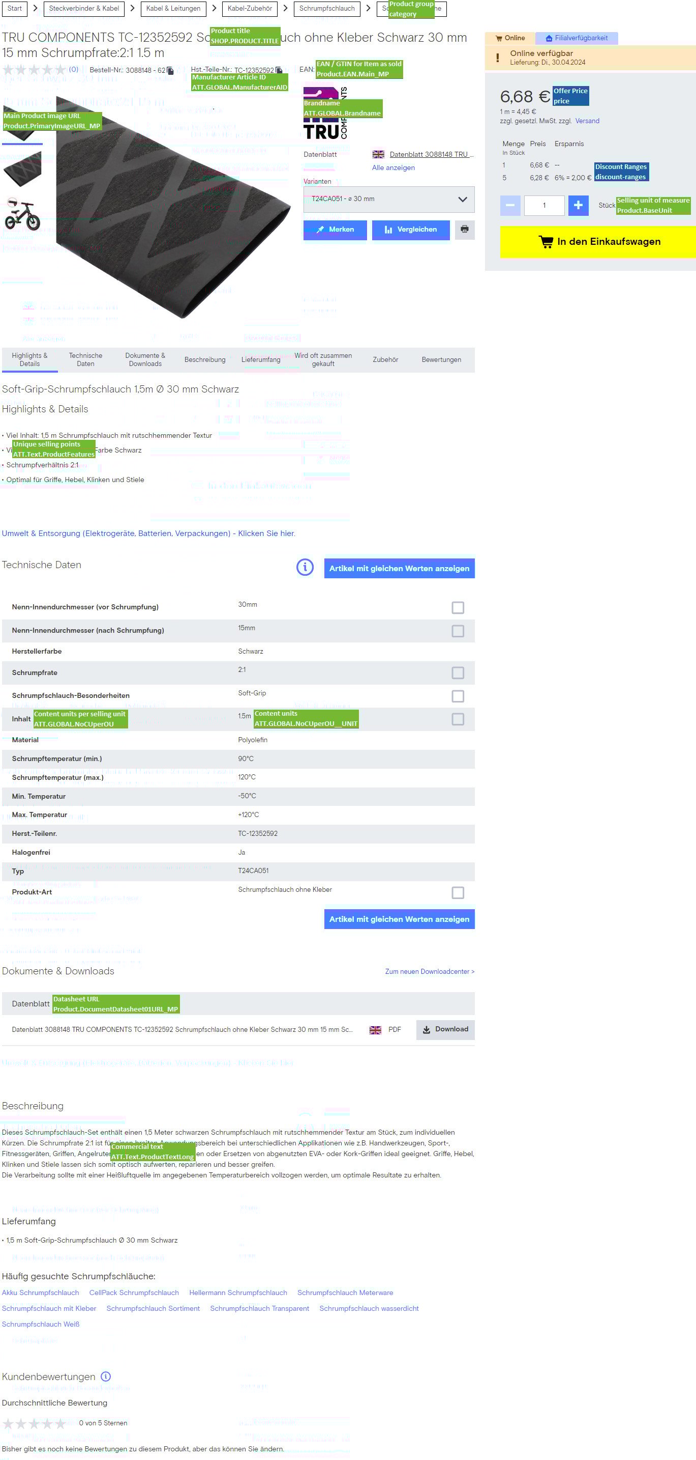 | Seller Product ID (Code: Product.SellerProductID) The unique product code you use to identify the product and its orders. Usually, this is the product ID assigned by your ERP system. This ID will later also be the reference for uploading your offers and order processing. | ||